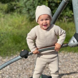 Stickat set Festset m/väst, knäbyxa och mössa - garnpaket i Bluum Pure Eco Baby Wool