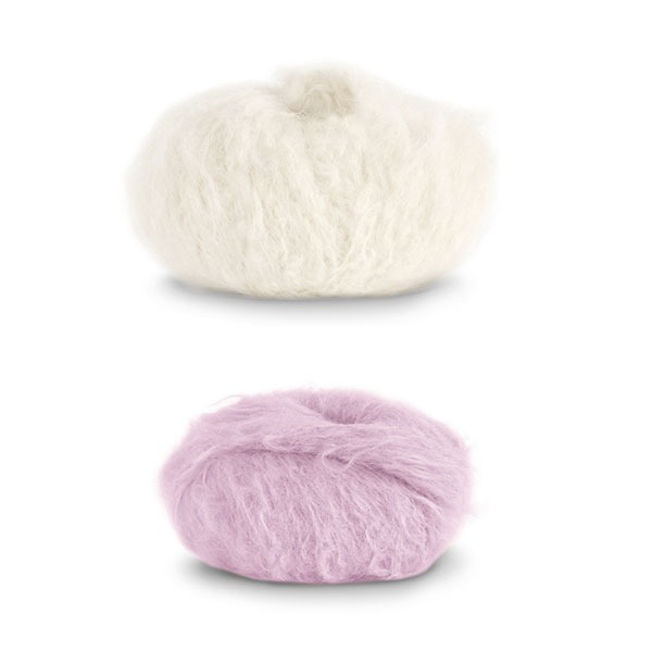 Stickad tröja Strå till dam - garnpaket från Bluum i Fnugg Stickning XS-S Vit/Pärlrosa