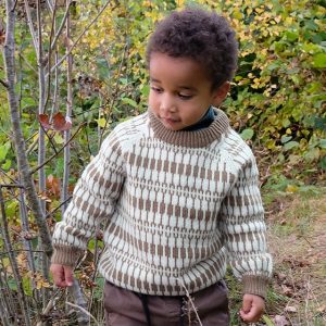 Stickad tröja Lärka - garnpaket i Bluum Pure Eco Baby Wool Stickning 6-8 år Beige melerad