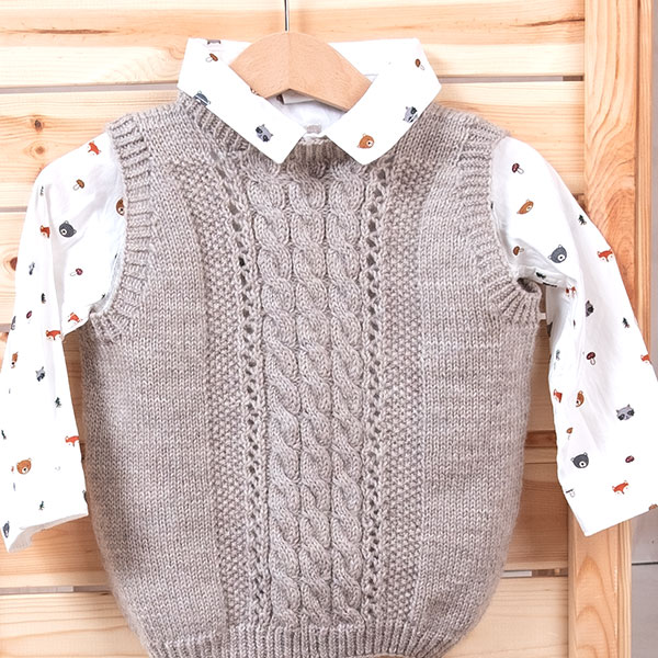Stickad väst Fläta – garnpaket i Bluum Pure Eco Baby Wool