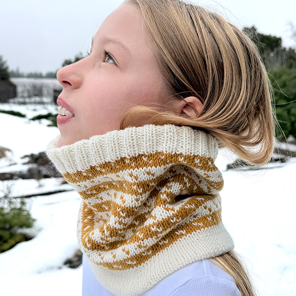 Gratis stickmönster! Sticka en trendig och enkel fuskkrage för vår, höst och vinter. Denna fuskkragen är inspirerad av det gamla islandsmönstret och är supermjuk att bära. Fuskkragen är dubbelstickad och kan bäras på båda sidor. Här hittar du mönstret i storlekarna 2-3 år, 4-10 år och vuxen. Modellen är stickad i Bluum Soft Merino Wool i färgen Majsgul (3008) och Natur (3019), vi använde 2 nystan i barnstorlekarna, medan man för vuxna behöver ungefär 1/2 nystan extra. Behöver du garn? Beställ och välj dina favoritfärger här. För att ladda ner receptet, ange det som ett vanligt köp till SEK 0, – så får du en länk som du kan ladda ner.