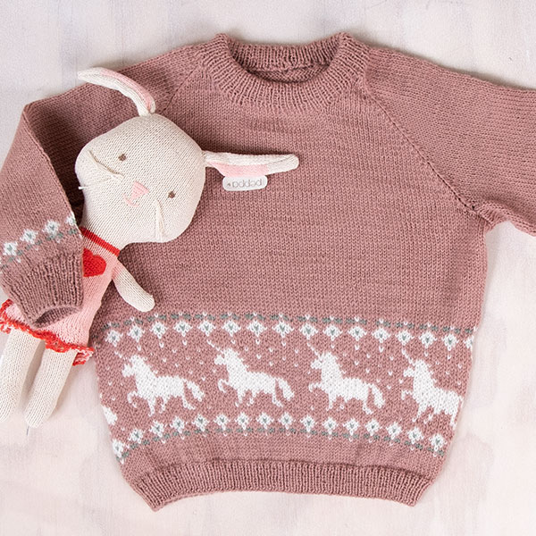 Stickad tröja Enhörning – garnpaket i Bluum Pure Eco Baby Wool