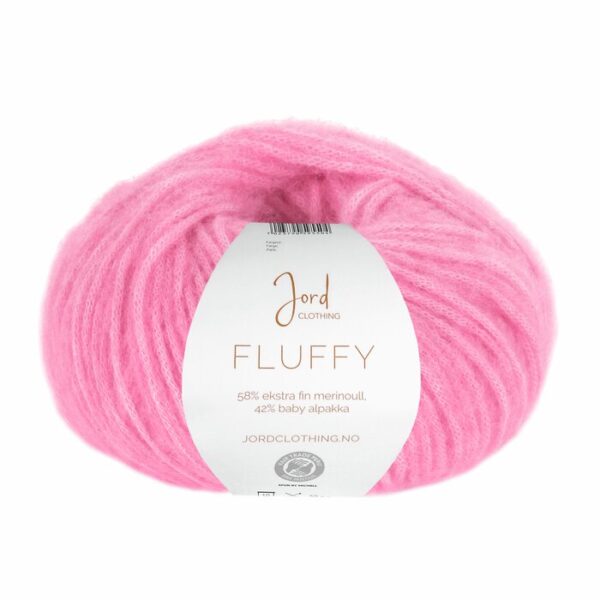 Fluffy från Jord Clothing är ett nytt kvalitetsblowgarn i en unik fiberkombination. Mjuk babyalpacka (42 %) runt en kärna av finaste merinoull (58 %) skapar ett fluffigt garn som passar utmärkt till tröjor, koftor och accessoarer för både barn och vuxna. Garnet är producerat i Peru och är garanterat mulesingfritt, eftersom den parasit som orsakar detta problem inte finns där.