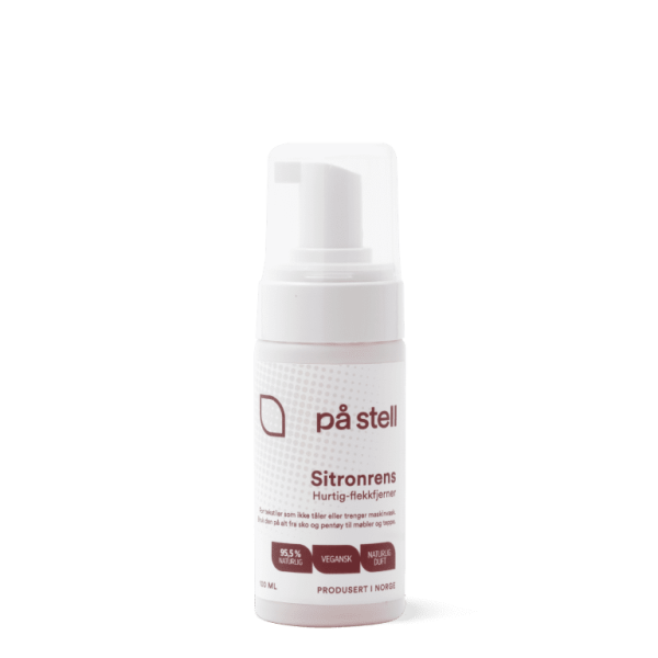 På Stell Citrontvätt – citrontvätt i skumform för det som inte kan tvättas i maskin. Skumsprayen är effektiv för plagg och interiörer, är enkel att använda och innehåller inga tillsatser, ingen palmolja, fosfater, enzymer, blekmedel, färgämnen, petroleumderivat, aggressiva syror, klor, ammoniak eller syntetisk parfym. På Stell Citrontvätt  är ekologisk, vegansk och skonsam.